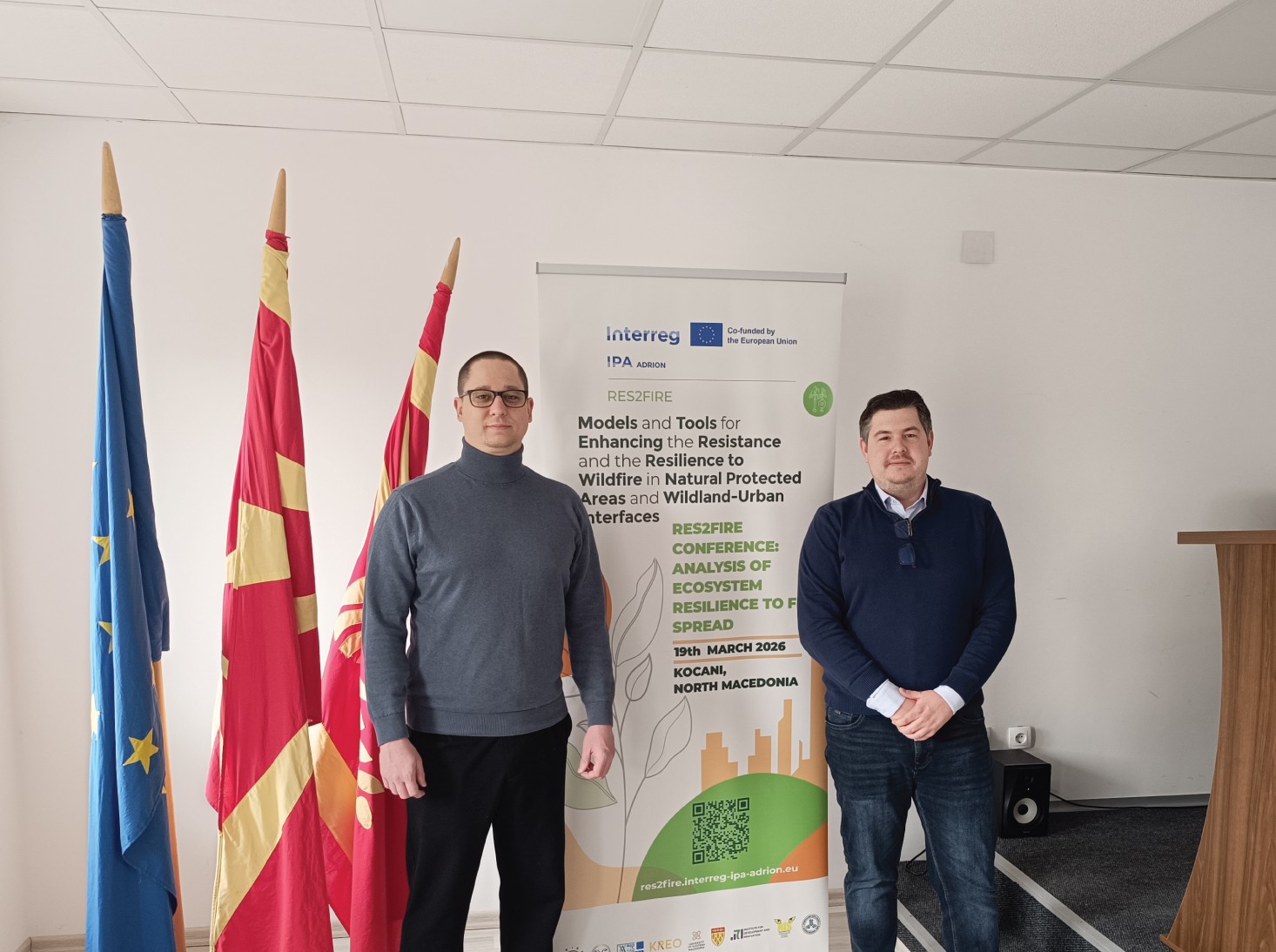 Representatives of the Institute attended a consortium partner meeting of the RES2FIRE, held in Kočani, North Macedonia. The goal of the RES2FIRE project is to develop joint procedures, methodologies and practical solutions for reducing the risk of wildfires and strengthening ecosystem resilience in the Adriatic-Ionian region. The RES2FIRE project is part of the Interreg IPA ADRION 2021–2027 programme, co-financed by the European Union, with a total budget of 1.2 million euros. The project’s focus in the previous period was on the analysis and assessment of fire risk through simulations, as well as the analysis of the effectiveness of measures for reducing combustible material.